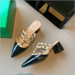 | nameOriginal | Internet celebrity rivet pointed toe ding medium heel versatile slippers |