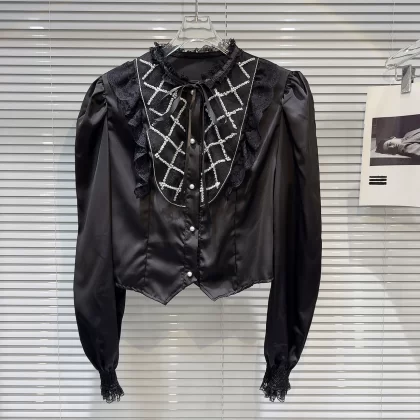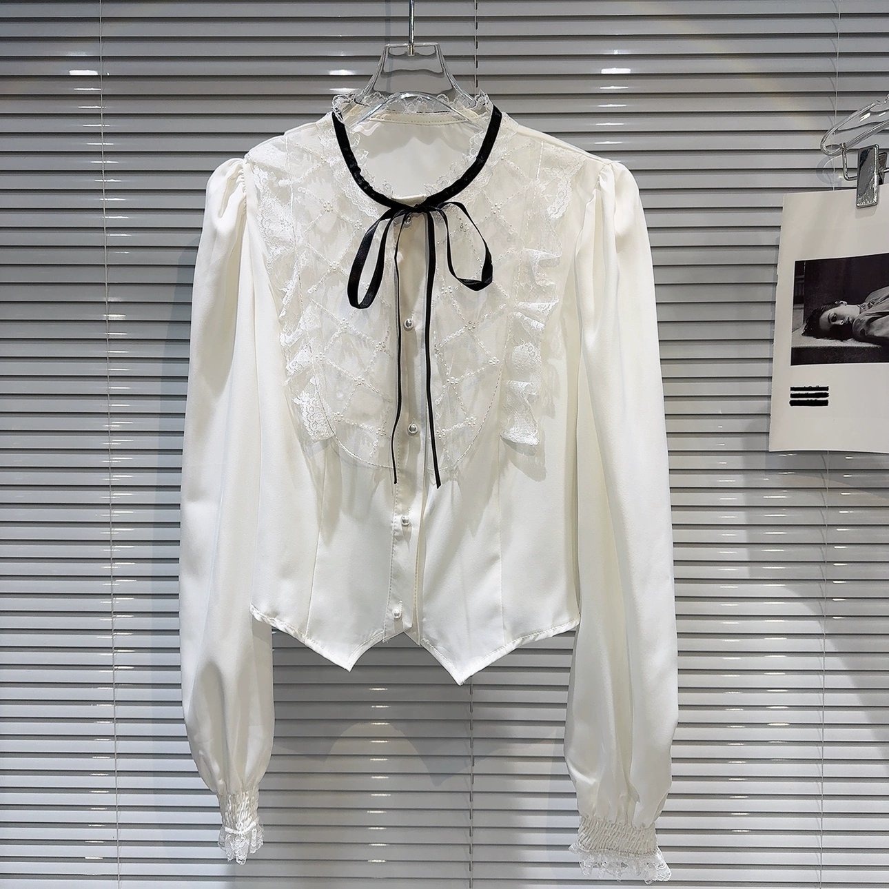 | nameOriginal | Internet celebrity same style 2024 spring new French lace ruffled lace bow tie sequin decorated mercerized shirt |