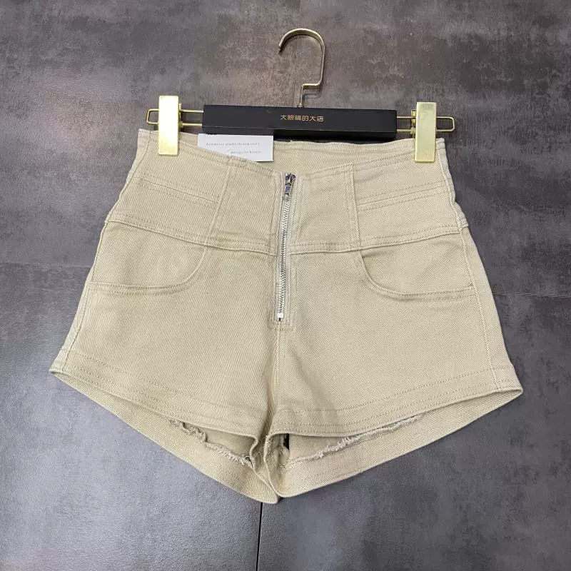 | nameOriginal | Internet celebrity silver zipper slim high waist denim shorts |