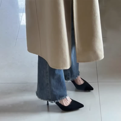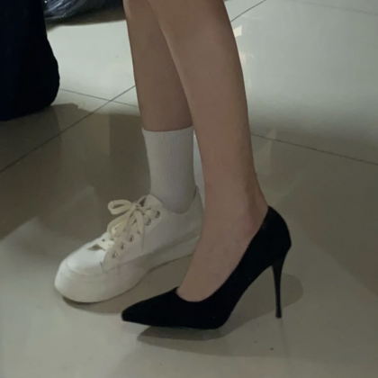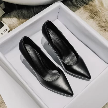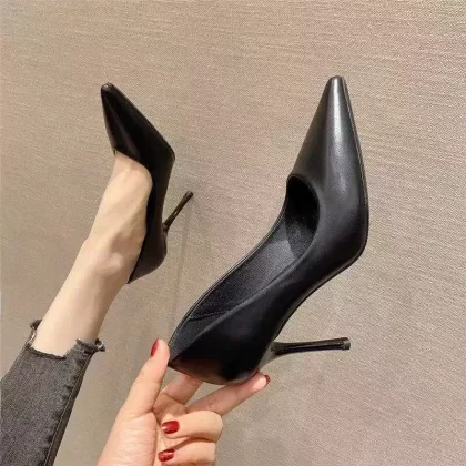 nameOriginal | Internet celebrity spring and autumn interview black soft leather high heels |