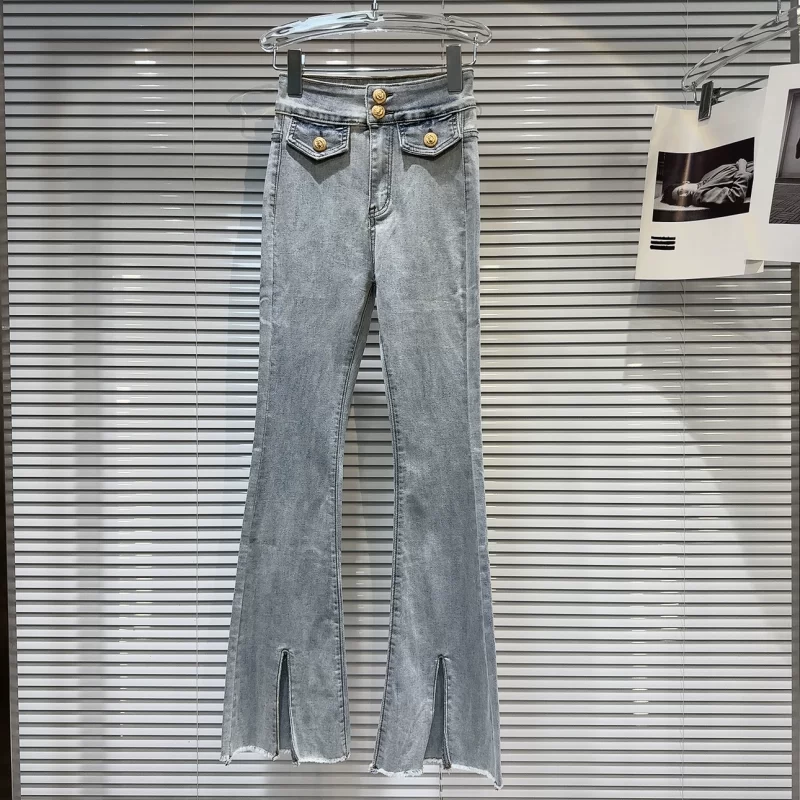 nameOriginal | Internet celebrity spring pocket elastic slim fit slightly flared metal buckle |
