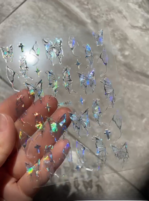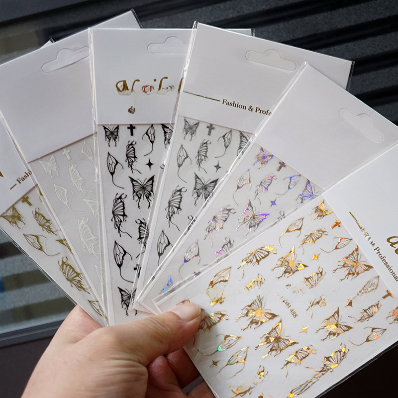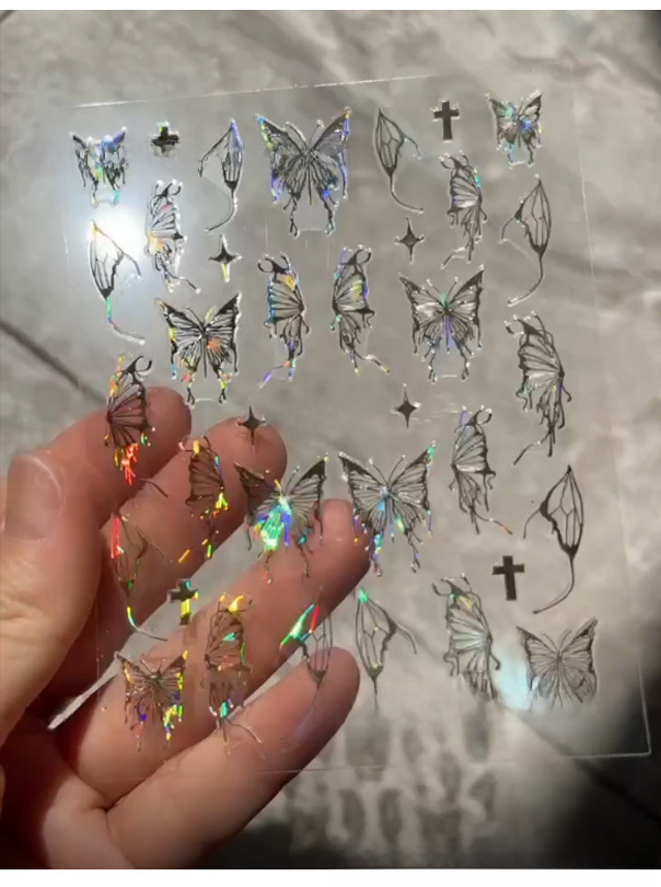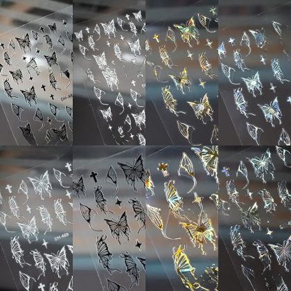 | nameOriginal | Internet celebrity style hollow hand-painted liquid butterfly nail sticker paper Net red style hollow black and white gold and silver laser Aurora decals |