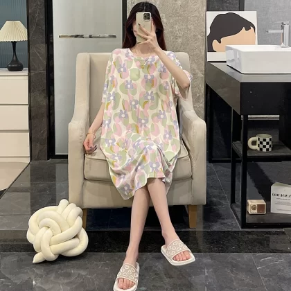 | nameOriginal | Internet celebrity summer pure cotton emerald green student nightgown for fat mm |