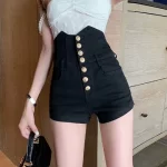 | nameOriginal | Internet celebrity super high waist slim fit denim shorts with buttons |