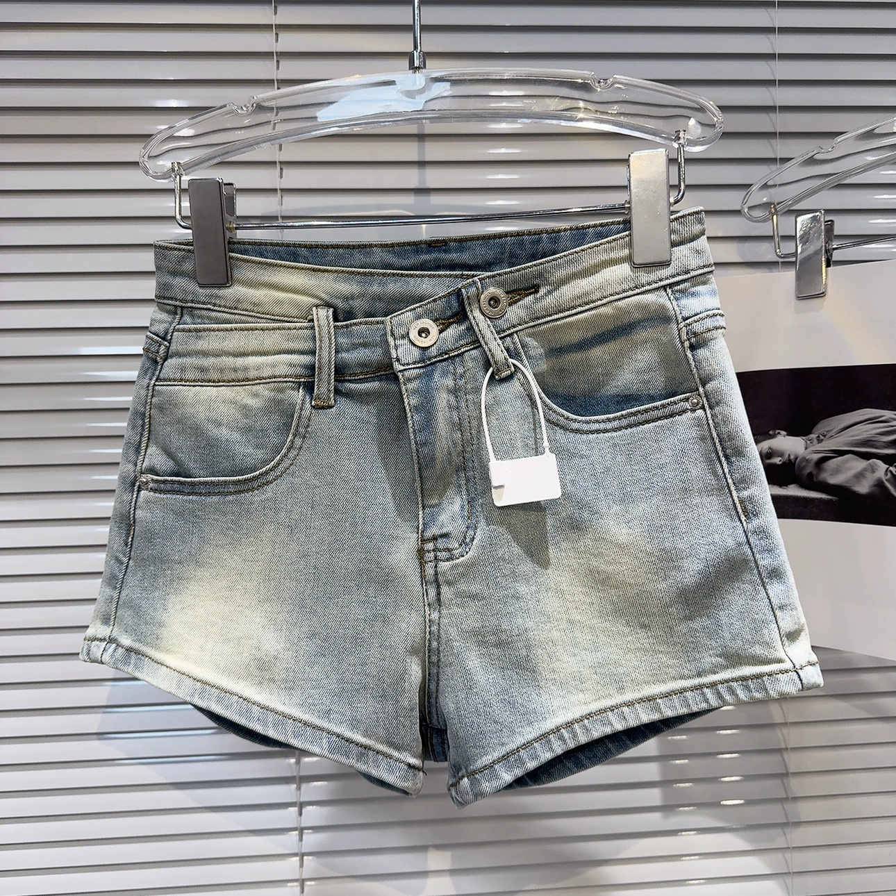 | nameOriginal | Internet celebrity washed white three-quarter denim shorts with metal buckle |