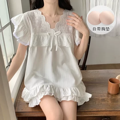 | nameOriginal | Internet celebrity women's pure cotton summer home wear pajamas with breast pads |