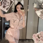 Internet celebrity women's short-sleeved leopard print high-end silk pajamas