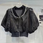 Internet celebrity's same 2024 summer new style threaded collar, waist, rhinestones, beads, hot rhinestones, sun protection, glass silk thin short jacket