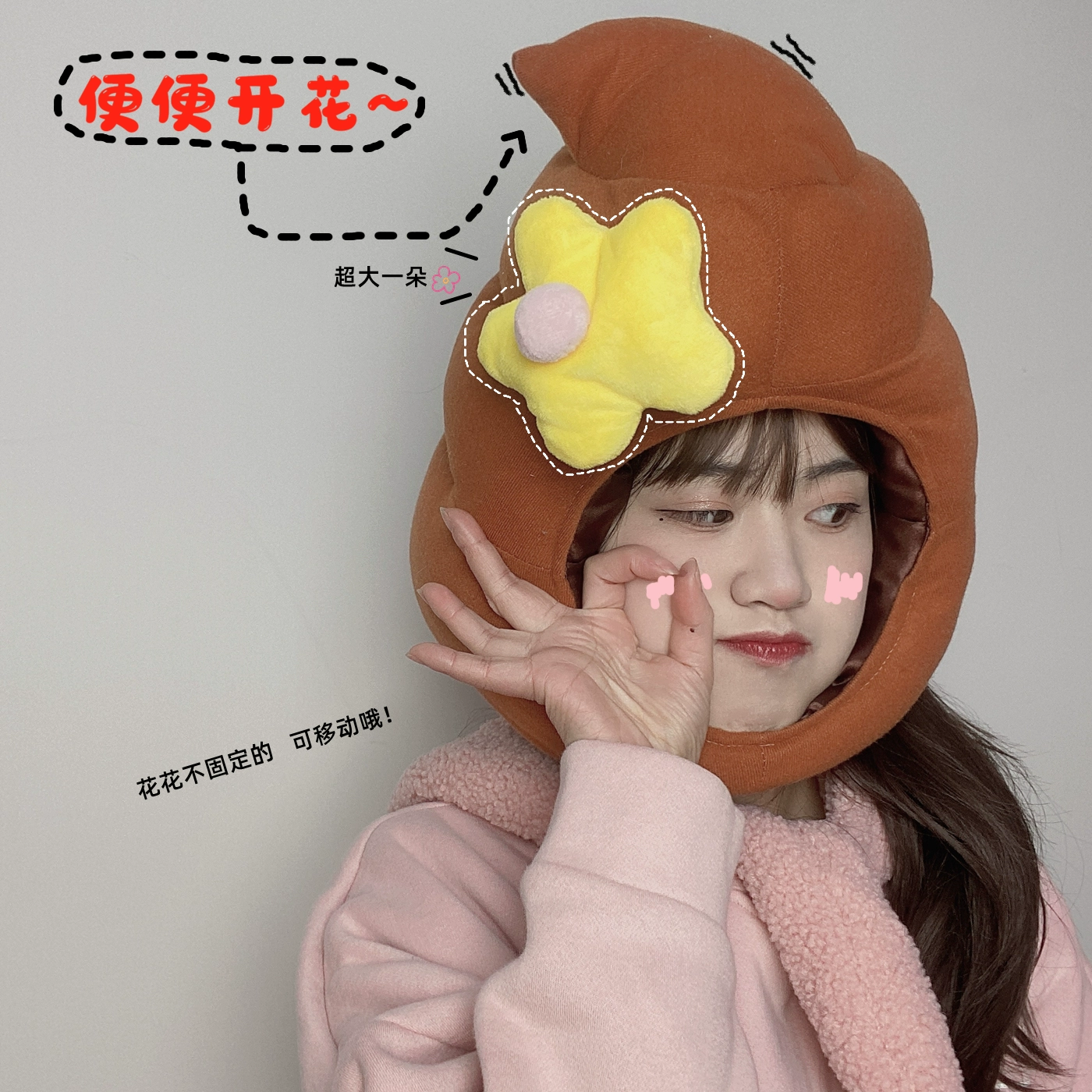 Internet celebrity's same style funny creative flower poop hat blooming poop hood photo performance party photo props