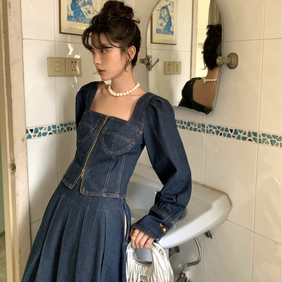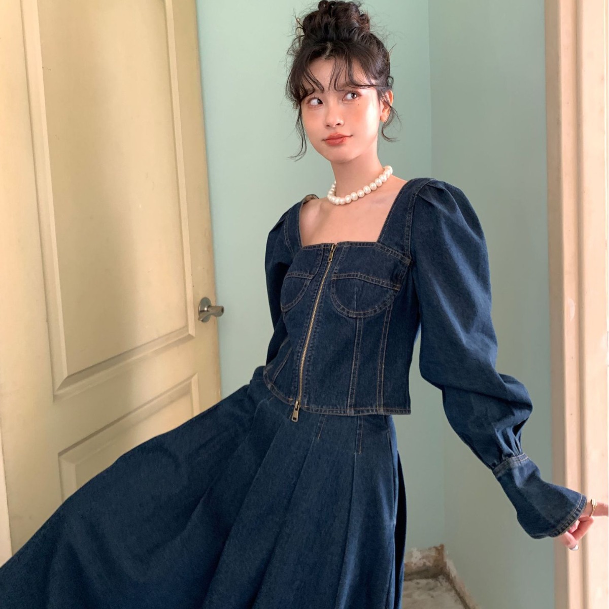 | nameOriginal | Interpretation beauty NEWOPEN 2024 early spring new French short bell sleeve Denim coat female H24C0396 |
