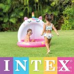 INTX 58438 58417 حمام سباحة للأطفال قابل للنفخ على شكل وحيد القرن حمام سباحة خارجي من الكلوريد متعدد الفينيل حمام سباحة للأطفال بالجملة