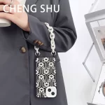 iPhone14Promax Messenger Phone Case Black Silicone 15 Xiaomi Flower Retro Style مناسبة لـ Apple 13 Phone Propack Protch -Style -Style White Xsmax Wrist Chain Hand 16 Model 16 Model’s Model