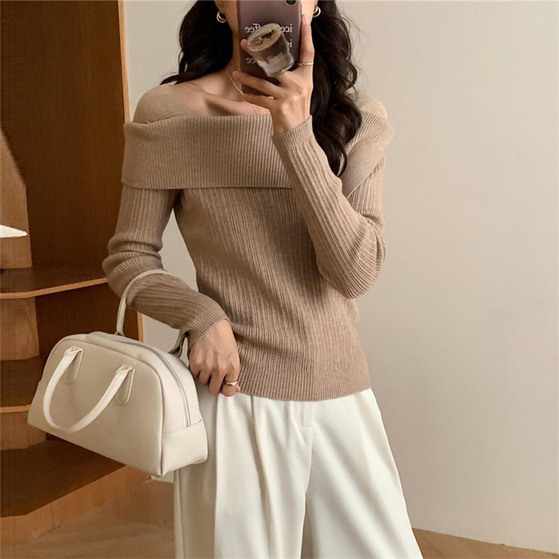 | nameOriginal | Irregular inner sweater women's French high waist collarbone top 2023 autumn and winter new off-shoulder knitted bottoming shirt |