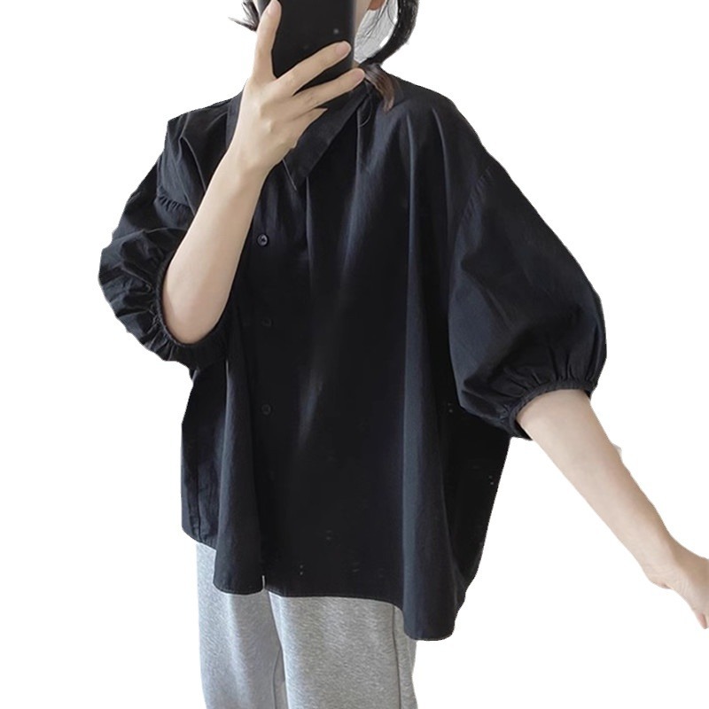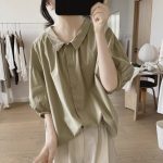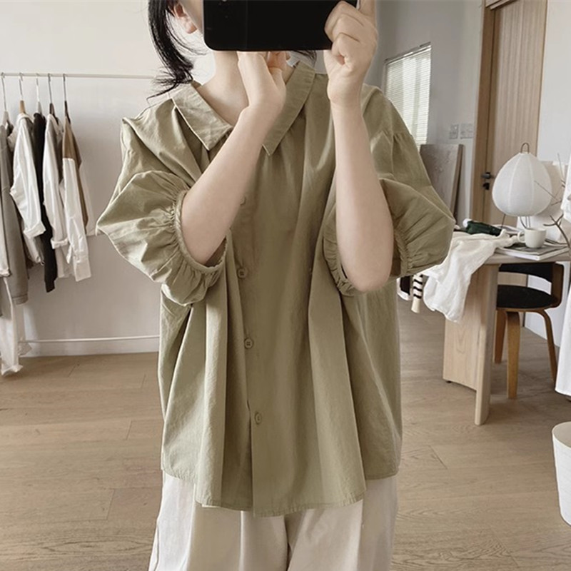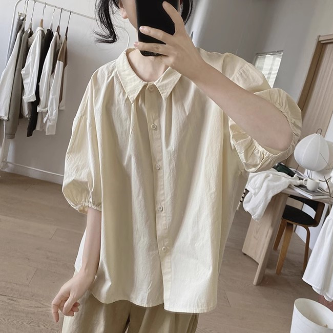 | nameOriginal | Irregular Pleated Shirt Women's Summer New Loose Slimming Lapel Simple Niche Design Short-sleeved Trendy Top |