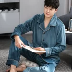 بيجامة Island Velvet للرجال للخريف والشتاء من الصوف المرجاني الرقيق بالإضافة إلى ملابس منزلية دافئة سميكة مخملية