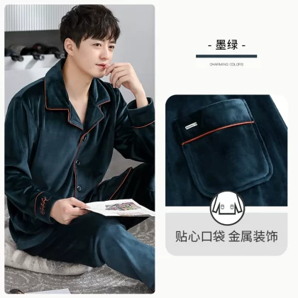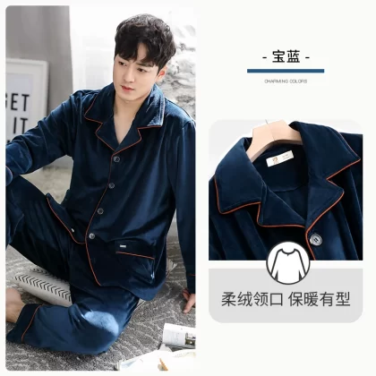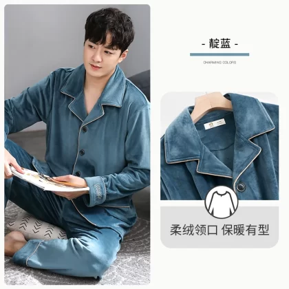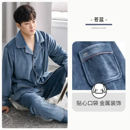 بيجامة Island Velvet للرجال للخريف والشتاء من الصوف المرجاني الرقيق بالإضافة إلى ملابس منزلية دافئة سميكة مخملية