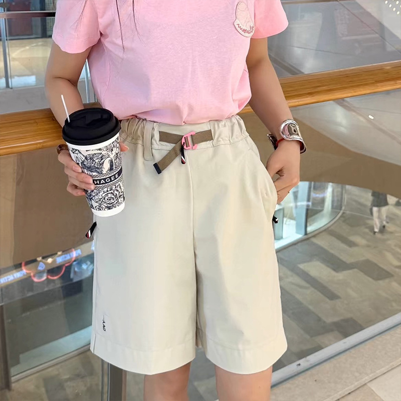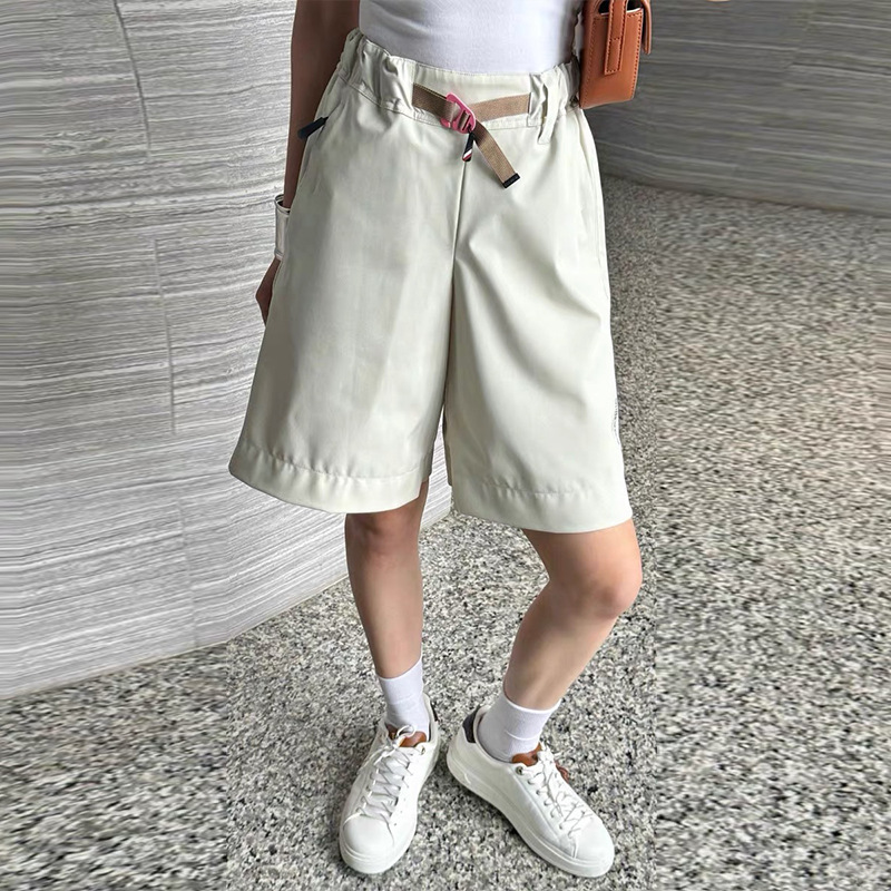 Italian Buckle 24 Summer Women's Pants Casual Five-point Pants Wide-leg Short Stretch Solid Color Slimming All-match Waist