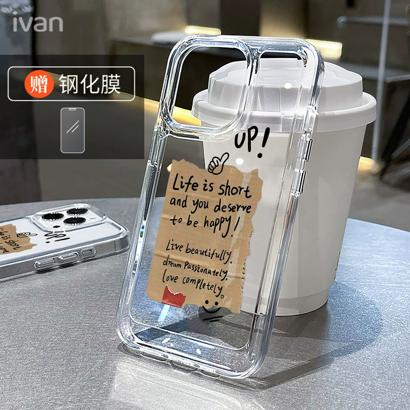 nameOriginal | ivan is suitable for iPhone15ProMax mobile phone case Apple 13 transparent 12 new style 16 protective cover silicone 14pro retro style niche high-end European and American corrugated paper inspirational English label |