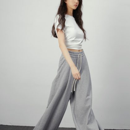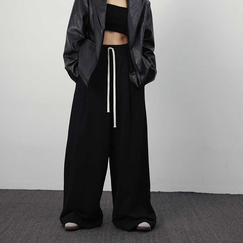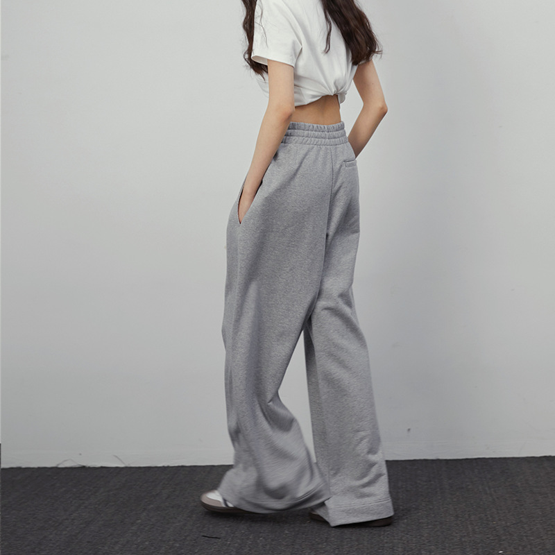 J0C American retro sports pants for women 23 autumn and winter New pure cotton loose draping minimalist straight mop wide-leg pants