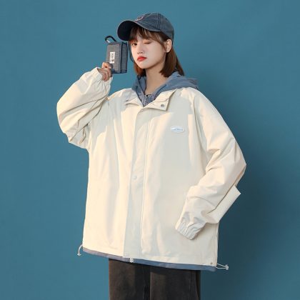 Jack Chuanyang 2022 Spring New Fake Two-piece Hooded Women's Jacket Trendy Fashion Jacket Neutral Style