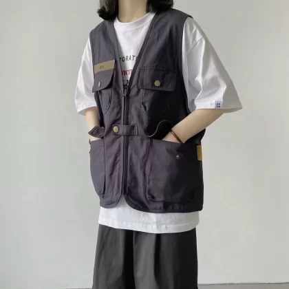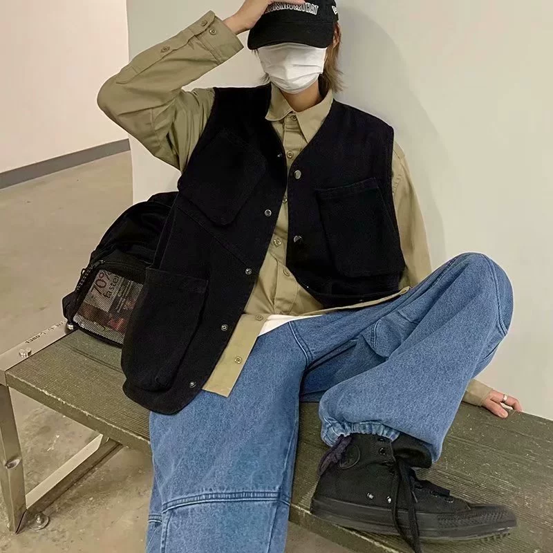 | nameOriginal | Jacket women's v-neck multi-pocket casual denim vest |
