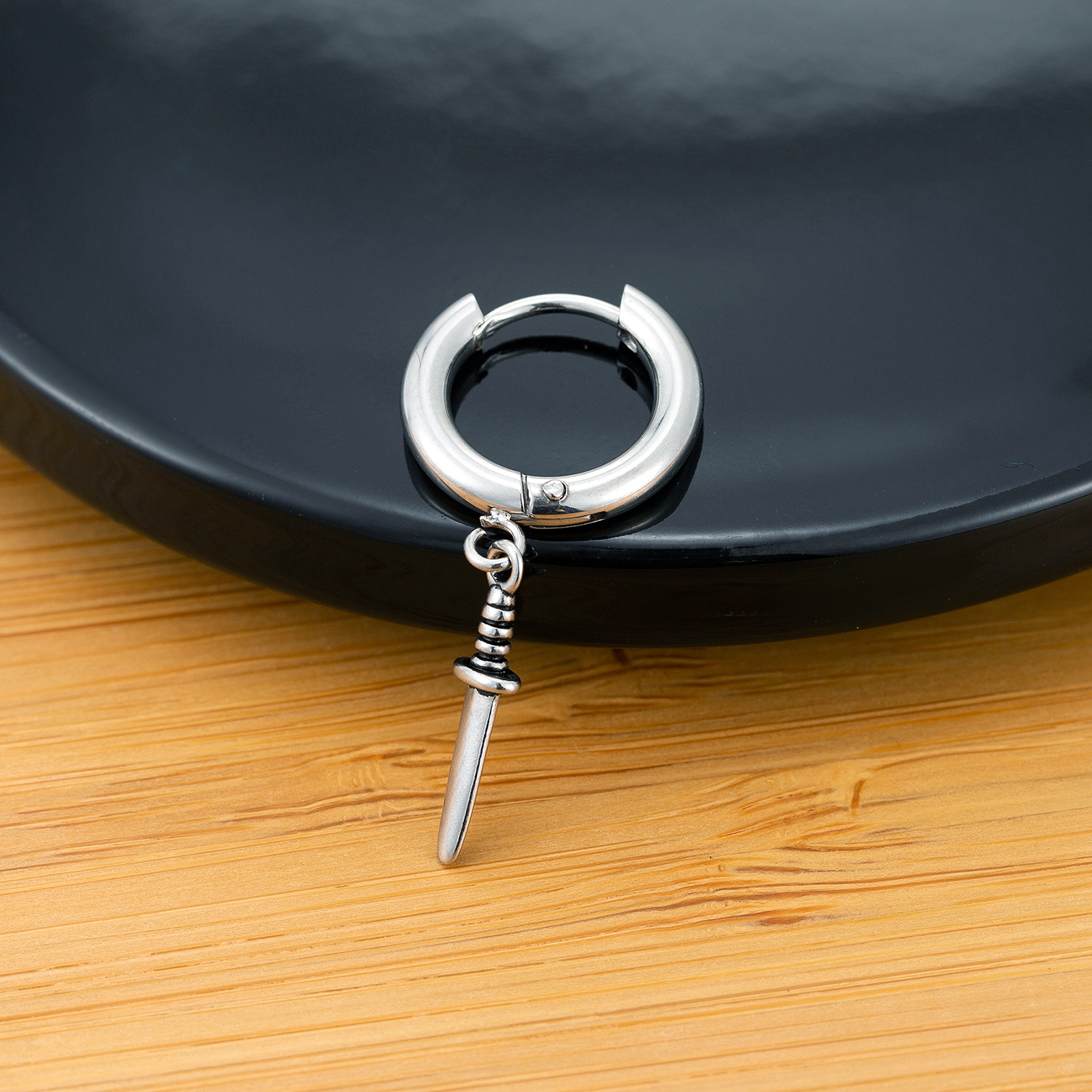 | nameOriginal | Japanese and Korean fashion knife earrings earrings men and women fashion earrings personality hip hop titanium steel earrings cross-border supply |