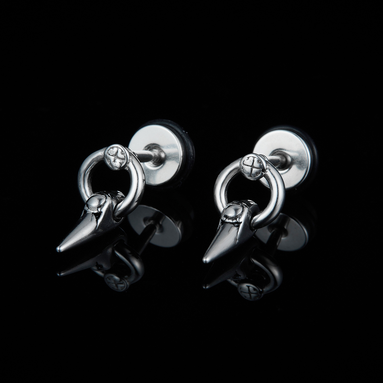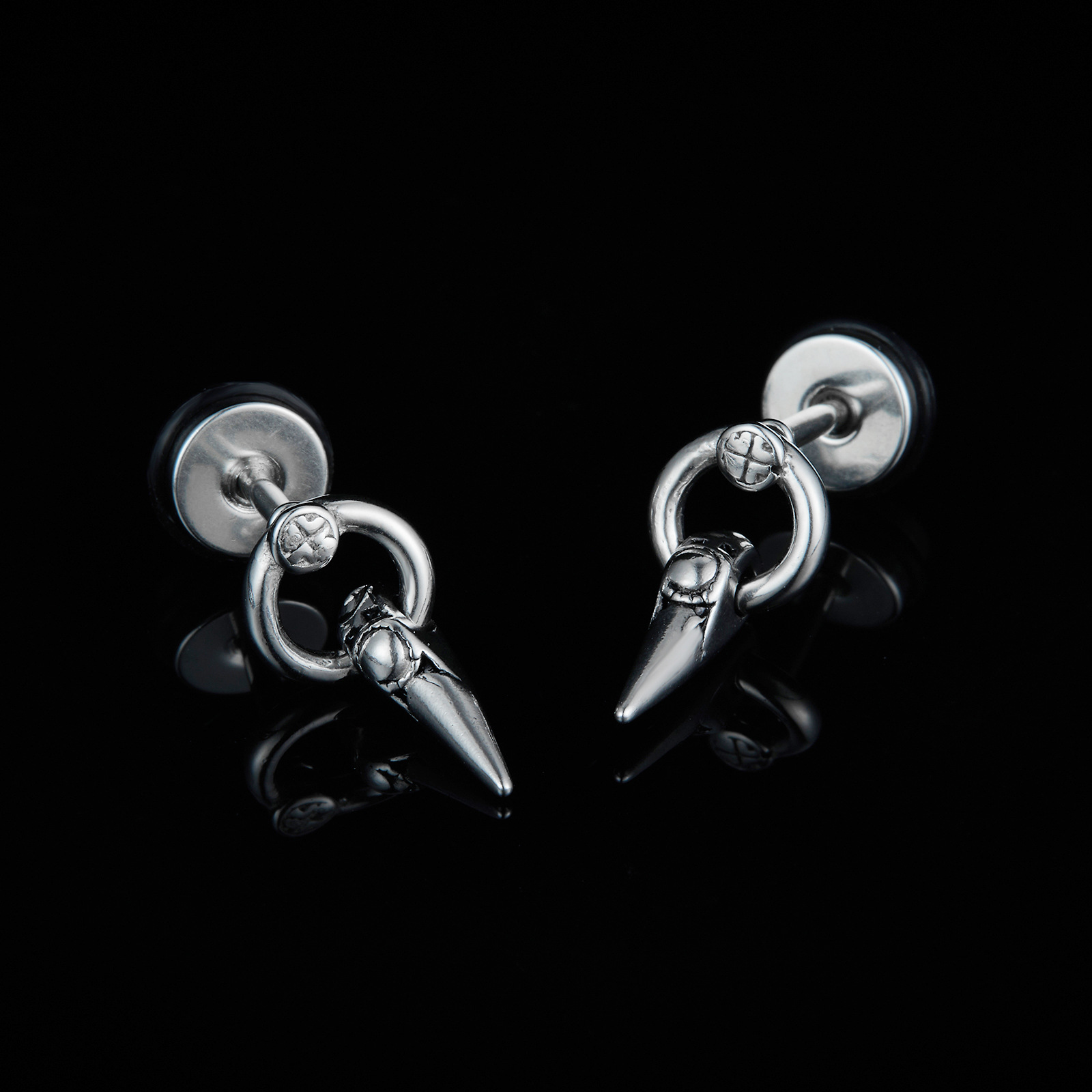 Japanese and Korean New Punk Ear Studs Personalized Hip Hop Earrings Titanium Steel Piercing Earrings Cross-border Supply