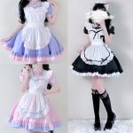 زي خادمة مقهى كوس الياباني باللونين الأبيض والأسود، ملابس أداء الرسوم المتحركة، فستان لوليتا لوليتا
