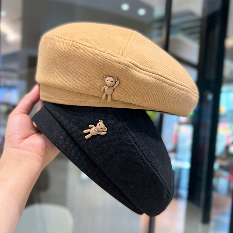 | nameOriginal | Japanese cartoon three-dimensional bear beret women's autumn and winter woolen bud hat Internet celebrity fashionable temperament painter hat |