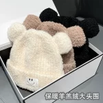 | nameOriginal | Japanese cute cartoon smiling face pullover hat with ears lamb wool knitted woolen hat for women autumn and winter warm Internet celebrity |