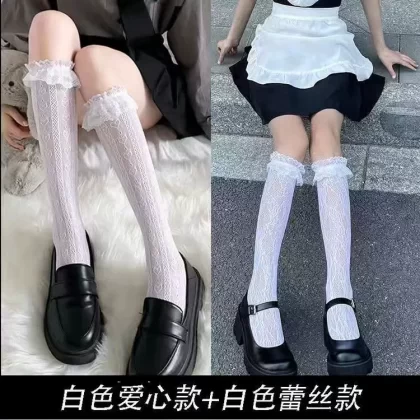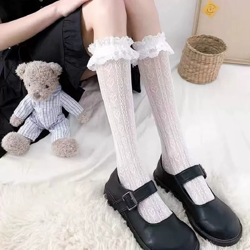 جوارب دانتيل سوداء يابانية JK للسيدات صيفية مثيرة للتخسيس من الدانتيل الأبيض جوارب متوسطة الطول للربيع والخريف قسم رفيع