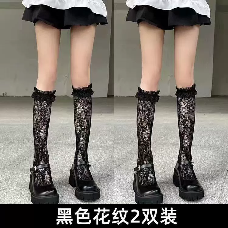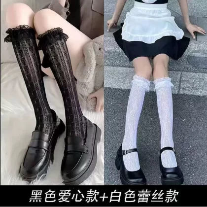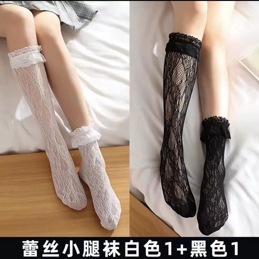 Japanese jk black lace socks women's summer sexy slimming white lace mid-length calf socks spring and autumn thin section