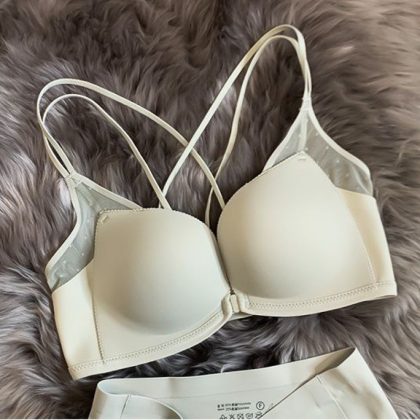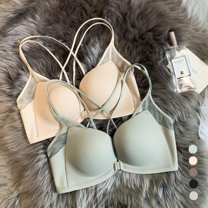 | nameOriginal | Japanese Light Kapok Comfortable No Steel Ring Front Button Thickened Push-up Cross Beautiful Back Bra Women's Small Chest Large Underwear for Women |