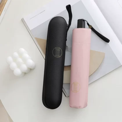 Japanese literary fresh solid color ultra-light sun umbrella 160g feather sun umbrella sun protection UV black glue