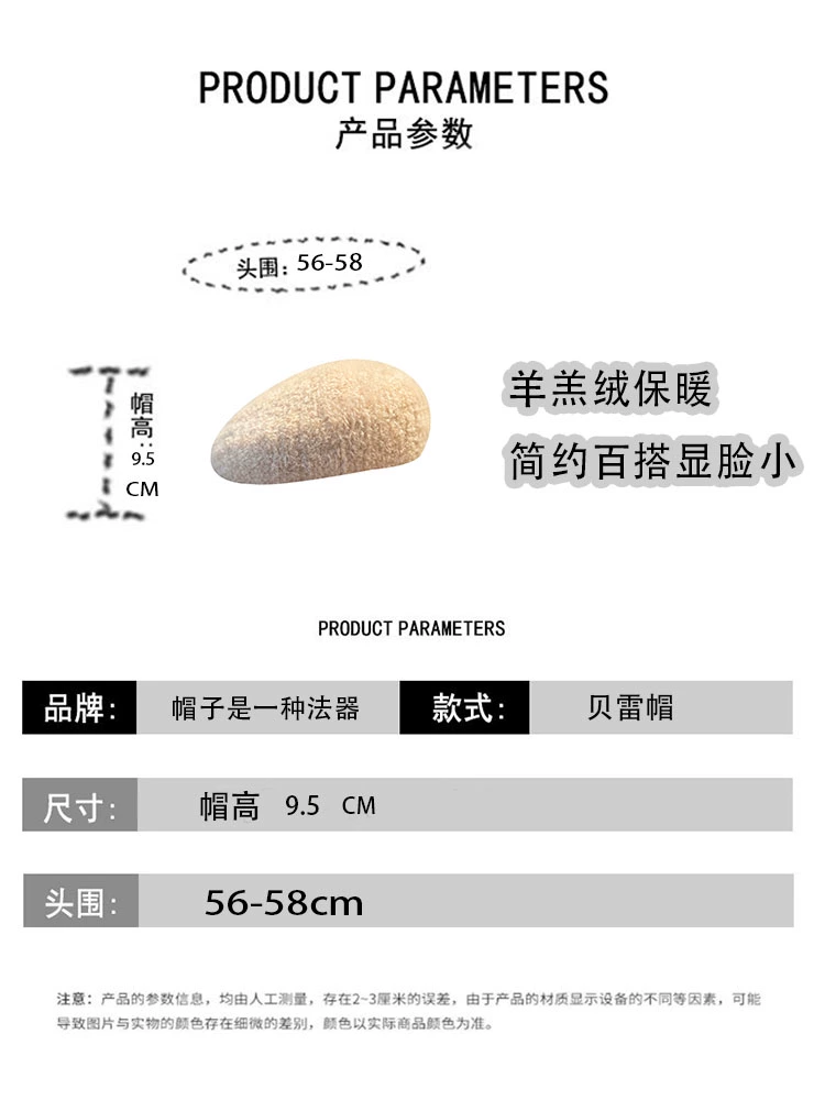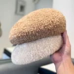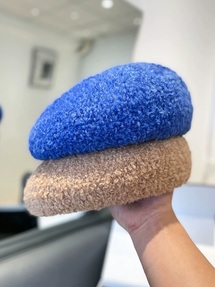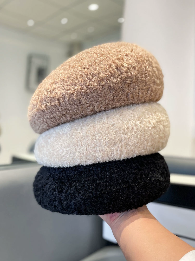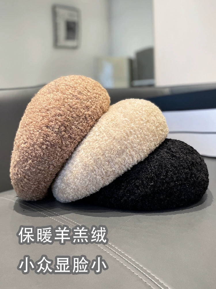 Japanese solid color lamb wool beret hat for women in autumn and winter, elegant and versatile painter hat, internet celebrity face-showing small pumpkin hat