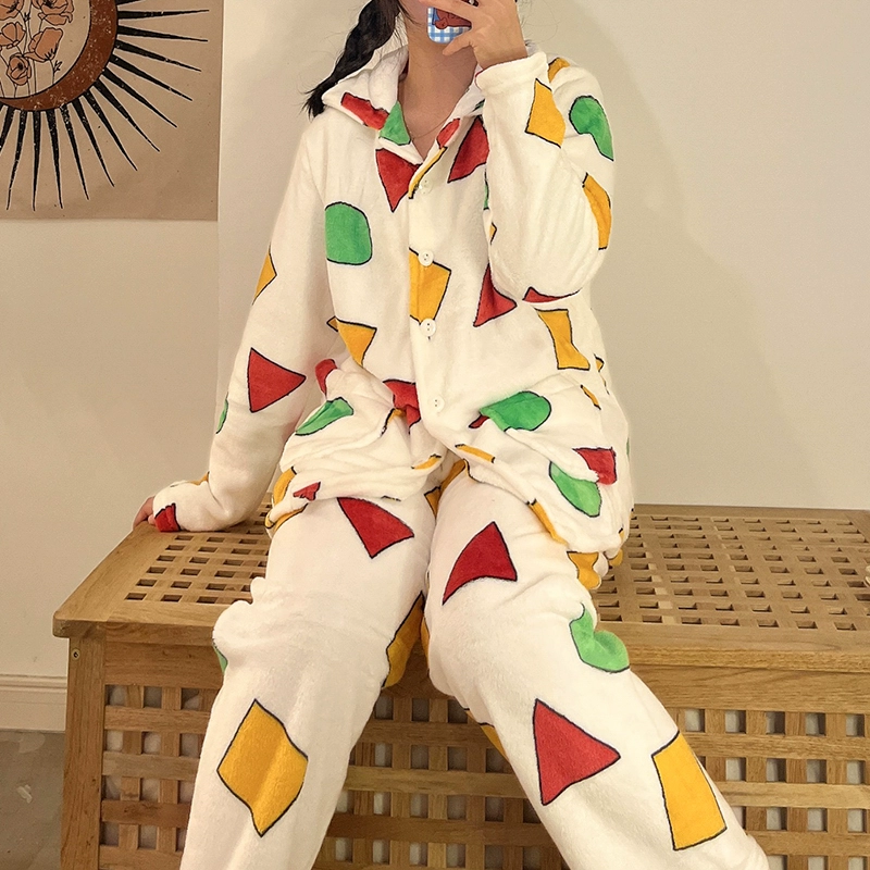 بيجامة دايلو على شكل نجمة يابانية للسيدات شتوية مخملية مرجانية نمط المشاهير على الإنترنت سميكة بالإضافة إلى مخملية ملابس منزلية للطلاب من الفلانيل الكرتونية