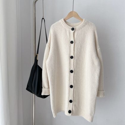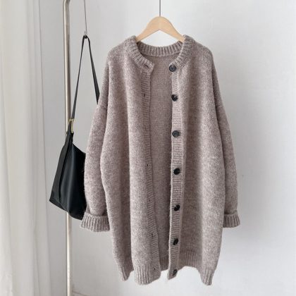| nameOriginal | Japanese style artistic style simple knitted cardigan for women 2023 New loose mid-length round neck sweater coat trendy 3700 |