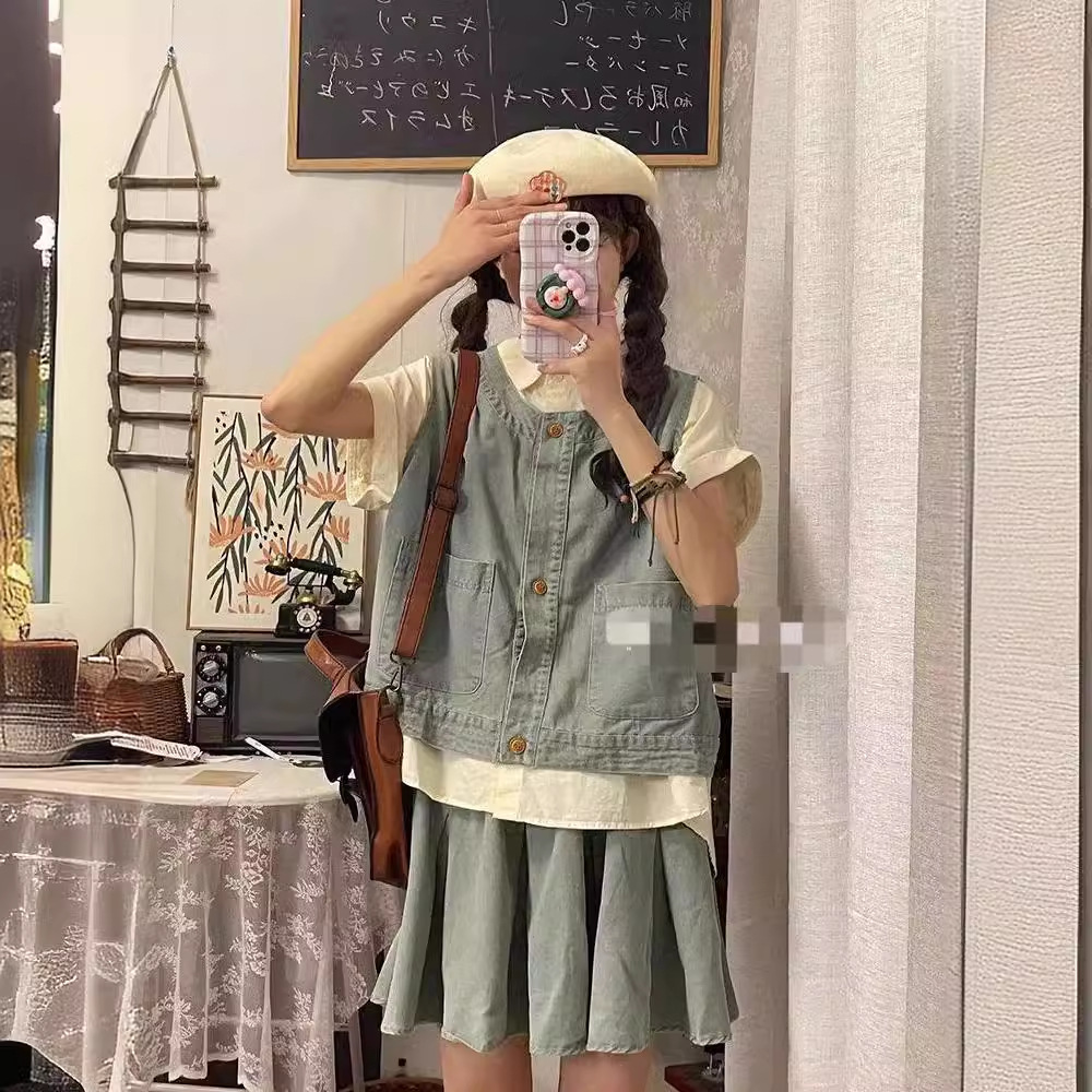 | nameOriginal | Japanese Style College Style suit Women's Summer New All-match Design Sense Niche Denim Vest Skirt Shirt Three-piece Set |