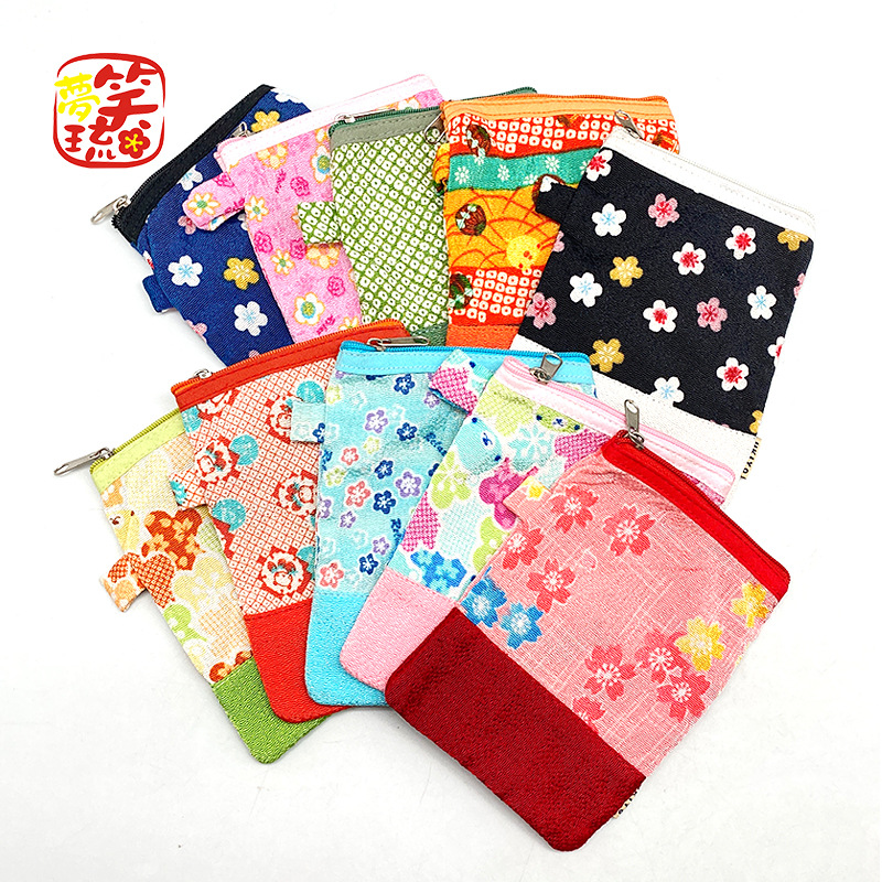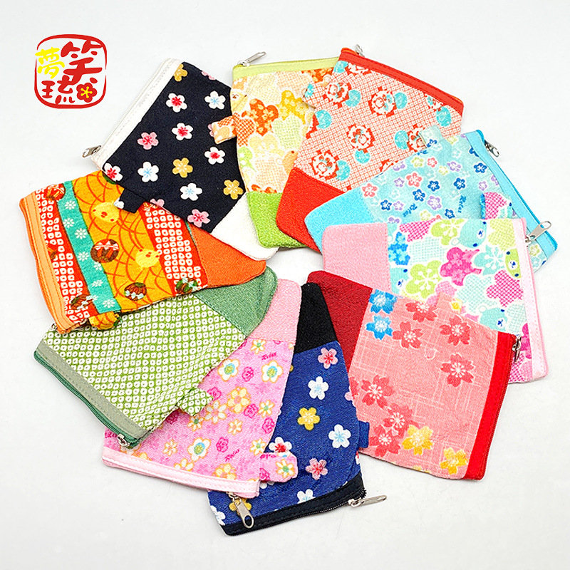 حقيبة بسحاب من القماش على الطراز الياباني # BC-4 حقيبة قطنية صحية لأحمر الشفاه وحقيبة صغيرة للمكياج وحقيبة تخزين وتغيير المجوهرات وحقيبة الهوية