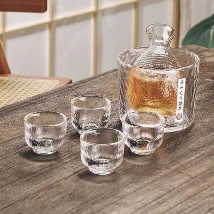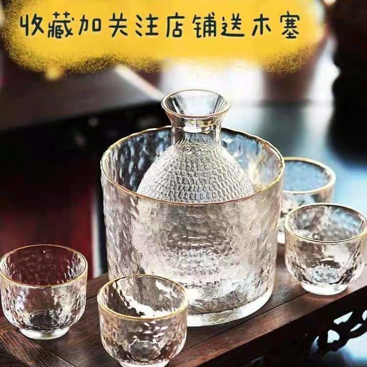Japanese-style Hammer Pattern Phnom Penh Glass Sake Rice Wine Warmer suit Wine Pot Household One-two White Wine Glasses Wine Coil Wine Utensils