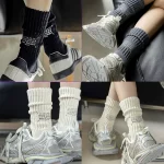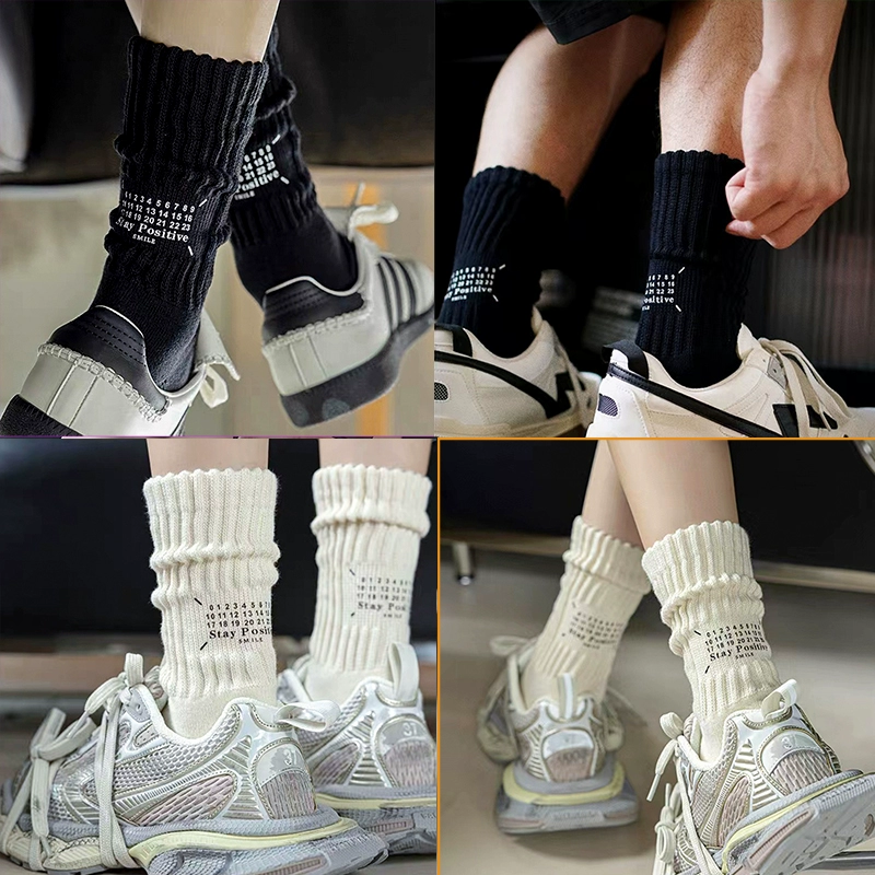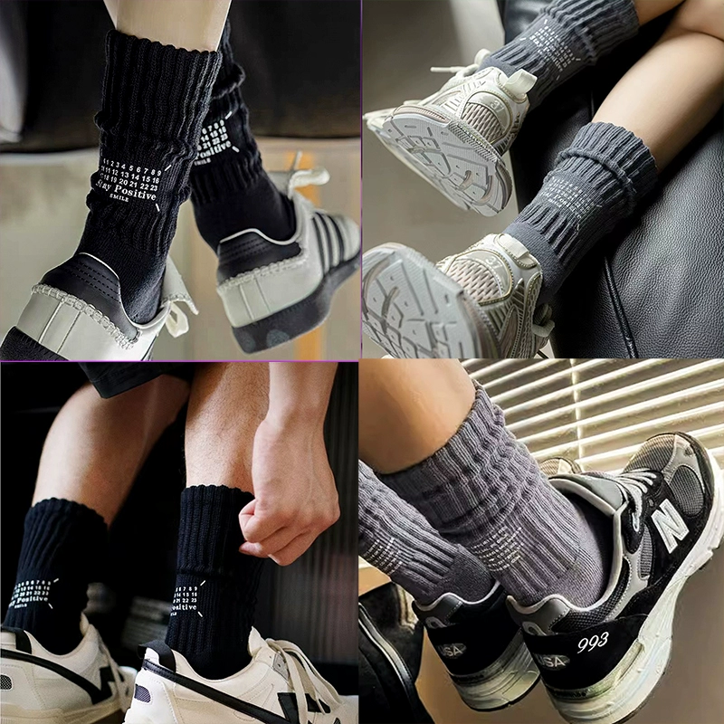 Japanese thick line socks for men and women in mid-length retro workwear pure cotton spring and summer letters ins trendy couple pile socks
