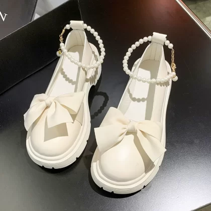 أحذية القوس اللؤلؤة البيضاء ذات السميك الياباني