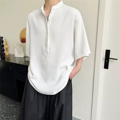 Japanese Yamamoto dark style stand collar silhouette short-sleeved shirt