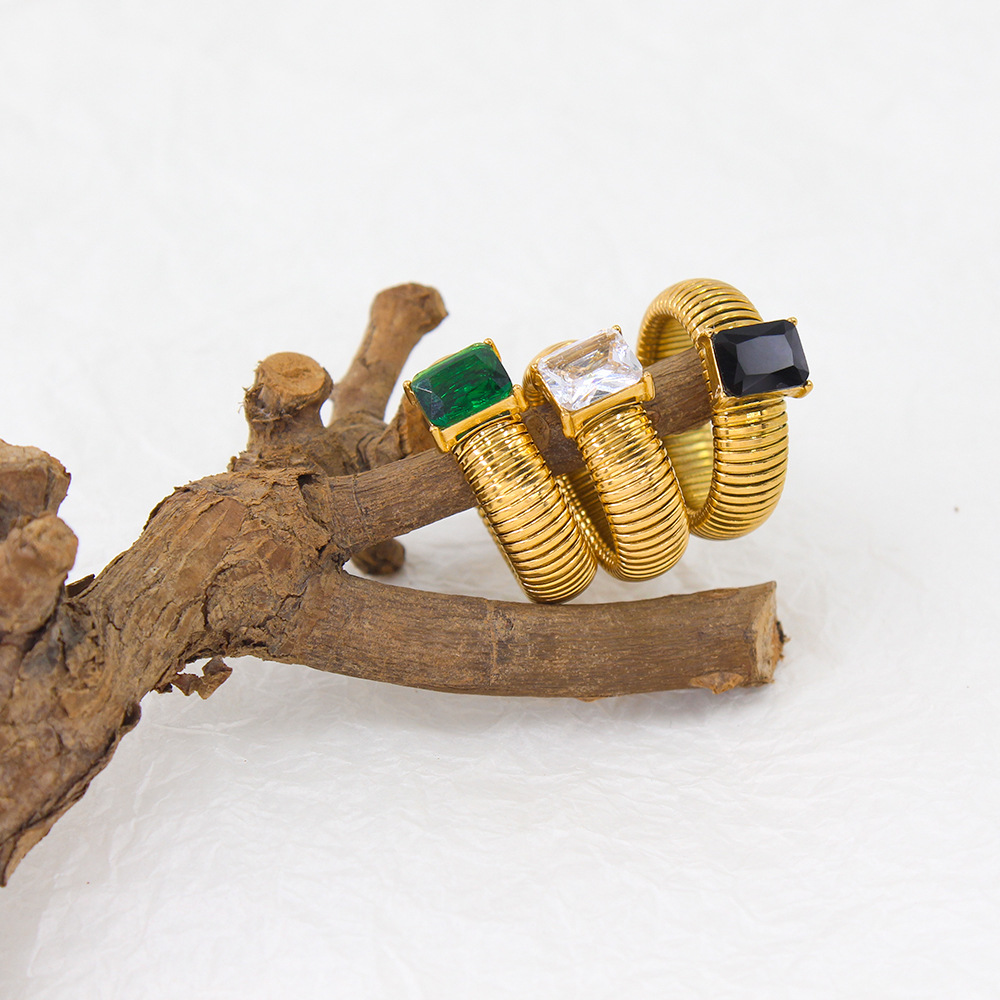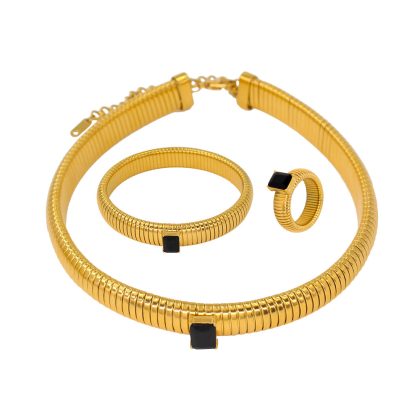 | nameOriginal | Jewelry suit French retro exaggerated design striped texture thick ring bracelet collar titanium steel zircon jewelry |
