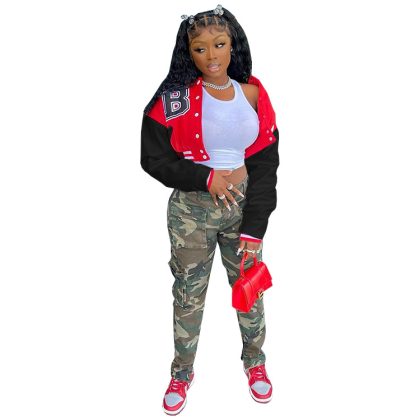 JH5953 European and American Women's Independent Station Cross-border Supply Autumn and Winter New Printed Fashion Casual Contrast Short Coat