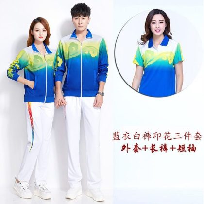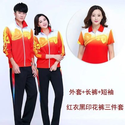 Jiamusi Aerobics Sportswear Suit Men's and Women's Spring and Autumn Middle-aged and Elderly People's Square Dance Performance Walking Group Clothing