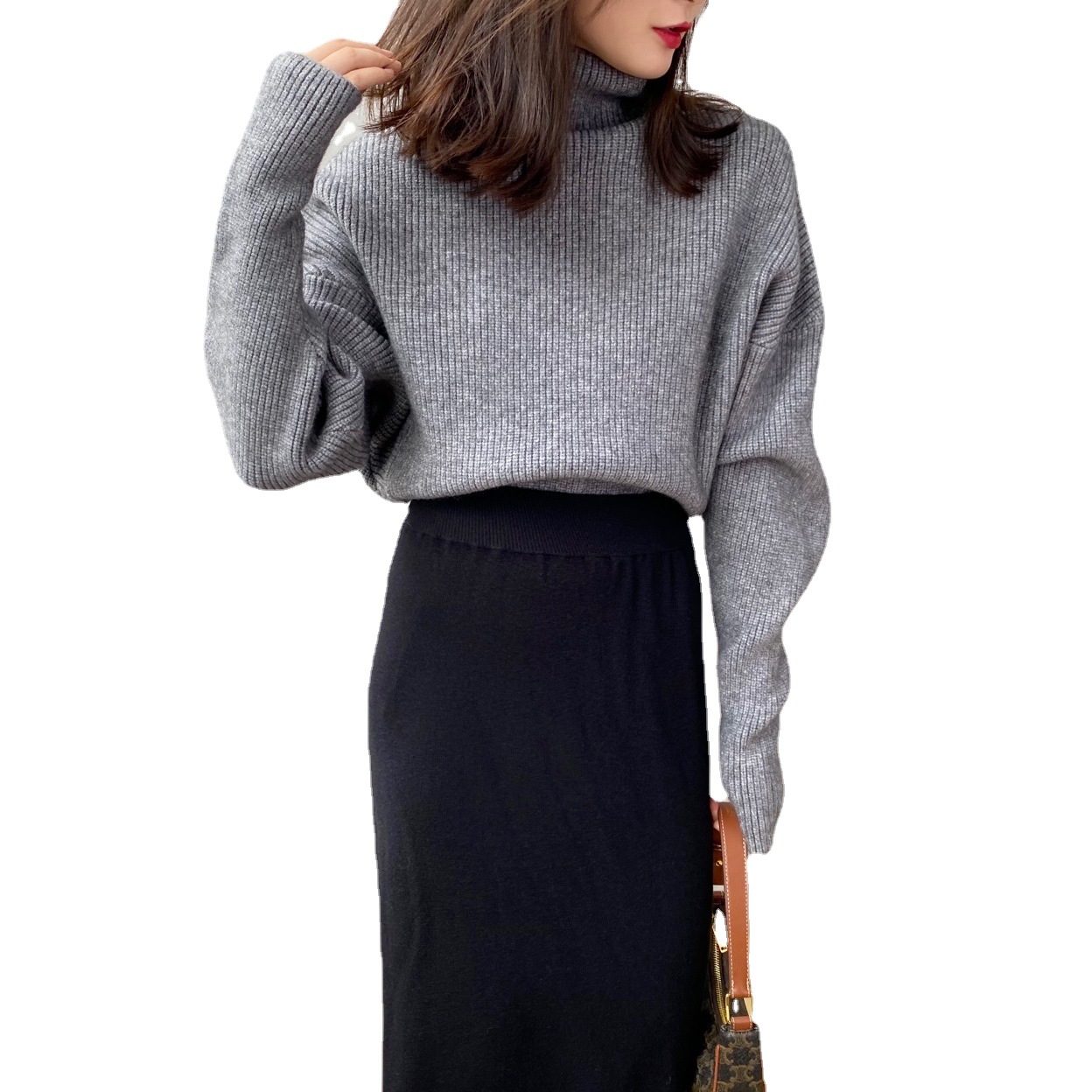 Jiazhi الخريف المرأة 2023 جديد بلون سترة مزاجه سميكة عالية الرقبة قاعدة طويلة الأكمام البلوز 8T3050
