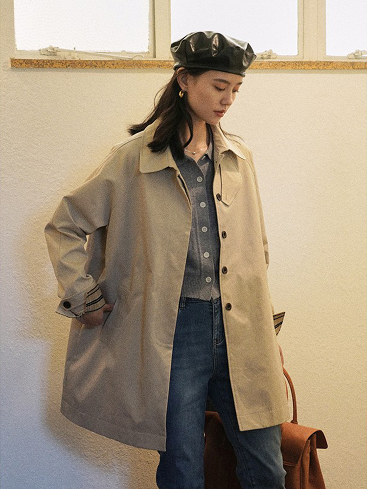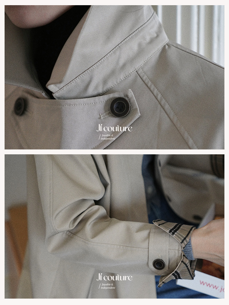 Jicouture معطف صيد متوسط ​​الطول بخياطة منقوشة للنساء للخريف معطف كاكي فرنسي فضفاض