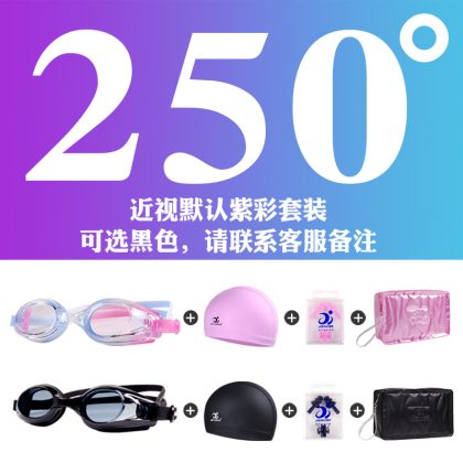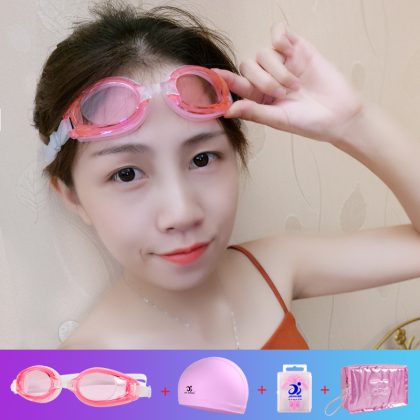Jiehu Swimming Goggles Women HD Transparent Anti-fog Waterproof Swimming Glasses Myopia Flat Swimming Goggles Swimming Cap Set Equipment