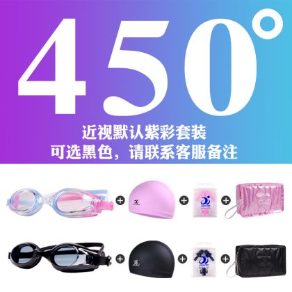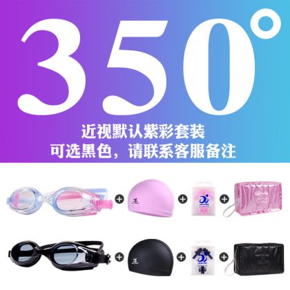 Jiehu نظارات السباحة النساء HD شفافة مكافحة الضباب نظارات سباحة مقاومة للماء قصر النظر نظارات السباحة المسطحة قبعة السباحة مجموعة المعدات